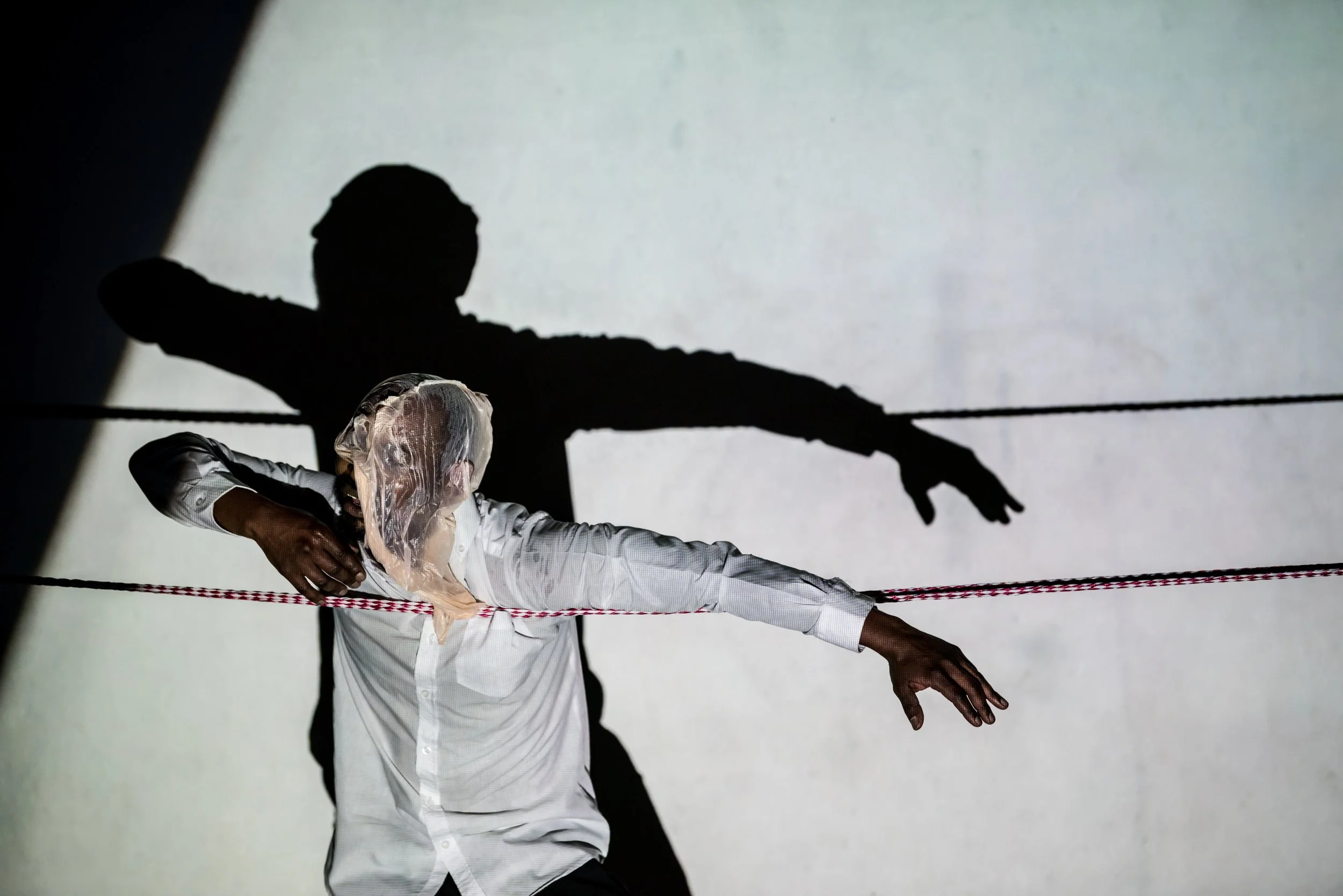 Throughout the performance, Chauke remains largely ensnared by the ropes. He is caught between the lines, hung out to dry, attempting unsuccessfully to inform from the margins. In this way, he is something of a flailing trapeze artist caught in a balancing act between past and present, the enduring power of history and the heavy weight of time.