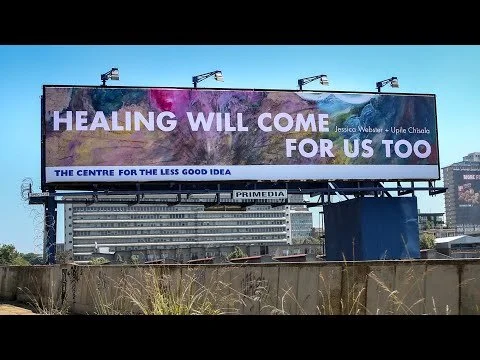 The second billboard for December 2020 and January 2021 on the Braamfontein Shunting Yard, M1 Freeway facing traffic travelling North, Johannesburg, was occupied by the artwork from a powerful collaboration between artist Jessica Webster and poet Upile Chisala. Webster created a painting that is part of something that is yet to come,echoing the words of Chisala’s poem: