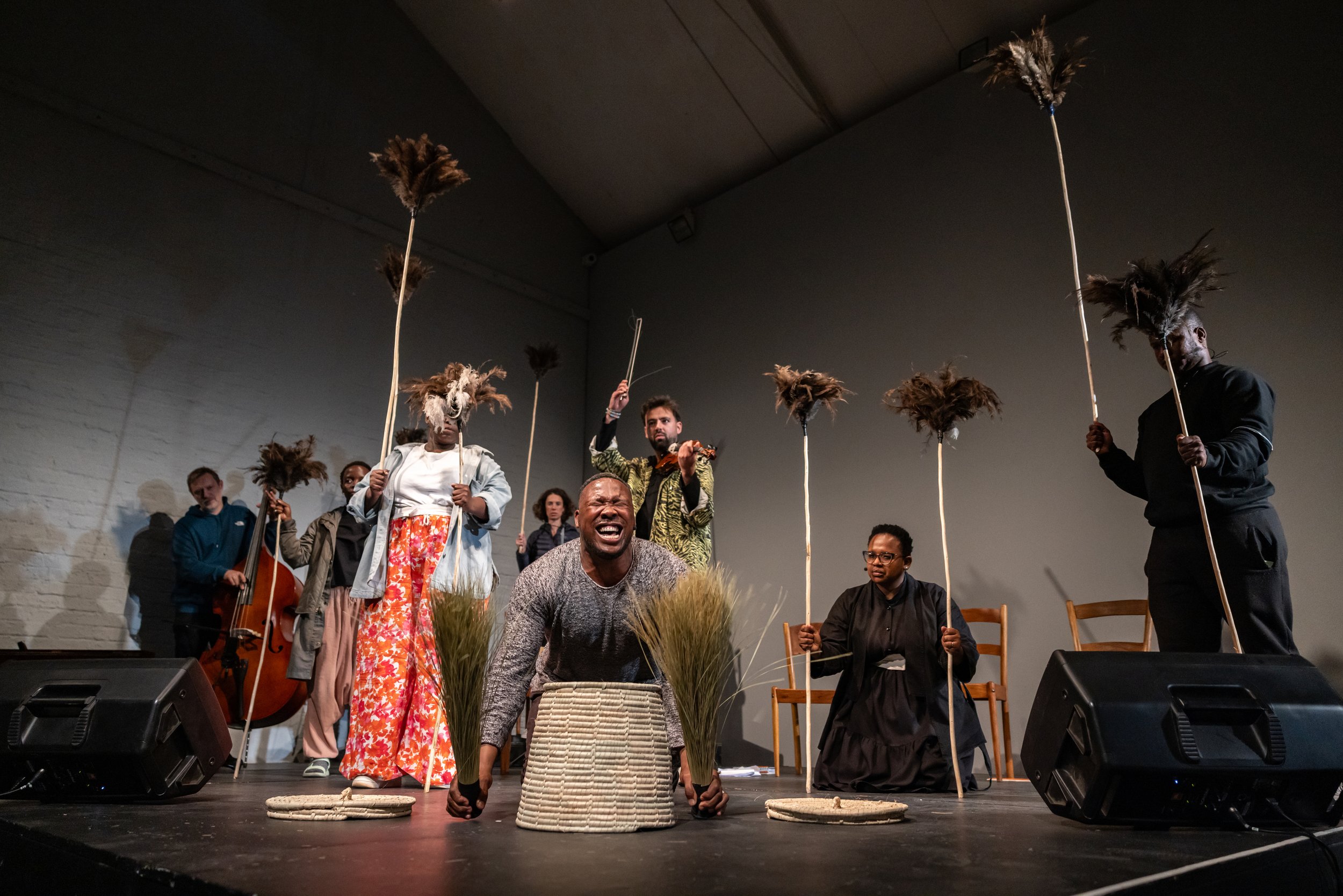 In June 2025, Shozi and Mahlangu were joined by a team of performers from South Africa and Germany for a week of workshops at The Centre for the Less Good Idea in Johannesburg. These musicians – Hlengiwe Lushaba Madlala, Pertunia Msani, Bvahangwele Moopo, Tshegofatso Khunwane, Gregory Mabusela, Alma Sadé, Tuyêt Pham, Deniz Tahberer, Julia Lindner, Arnulf Ballhorn, Magdalena Bogner, and Matthias Kamps – also worked closely with Wits Creative Writing’s Stacy Hardy to develop the libretto.