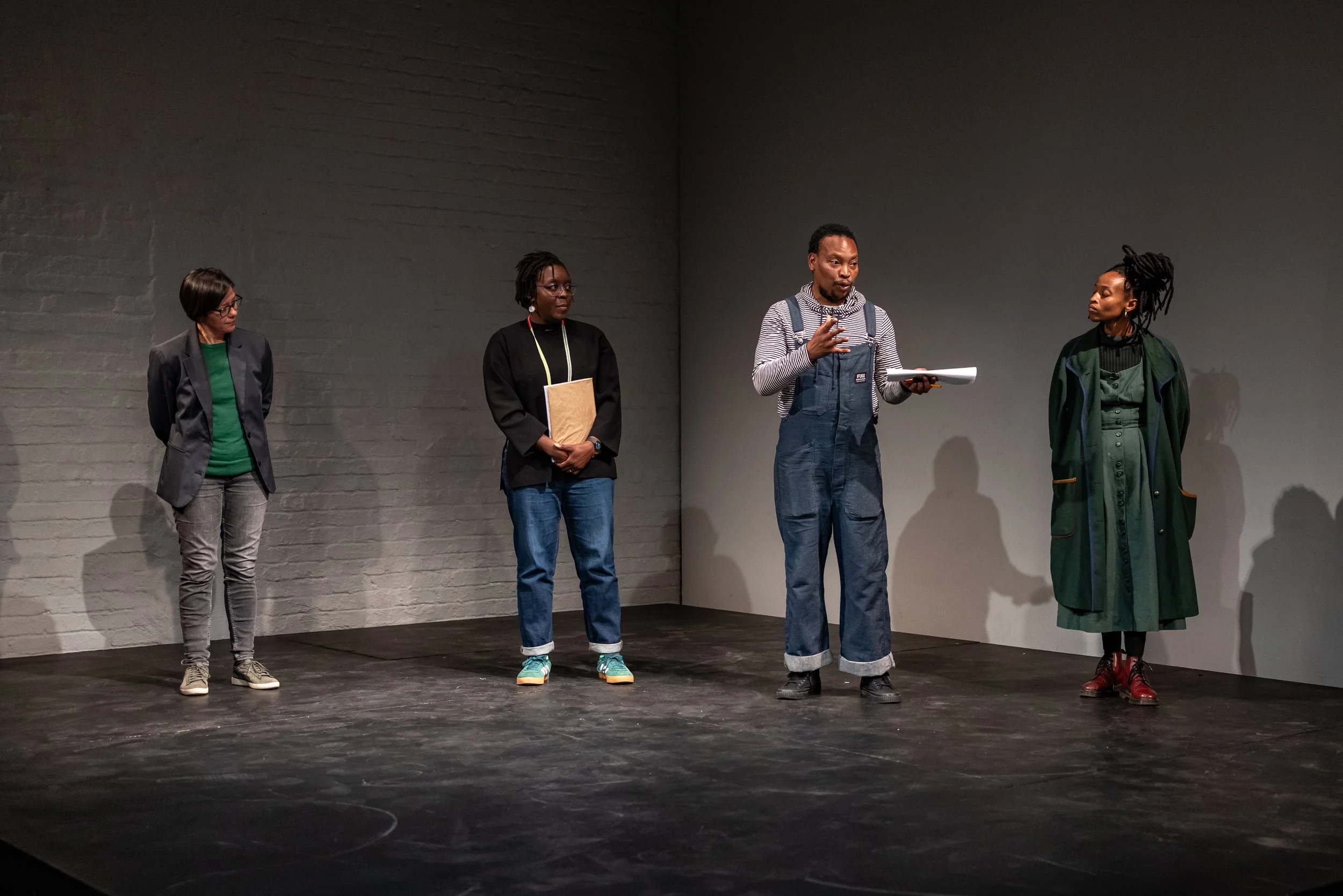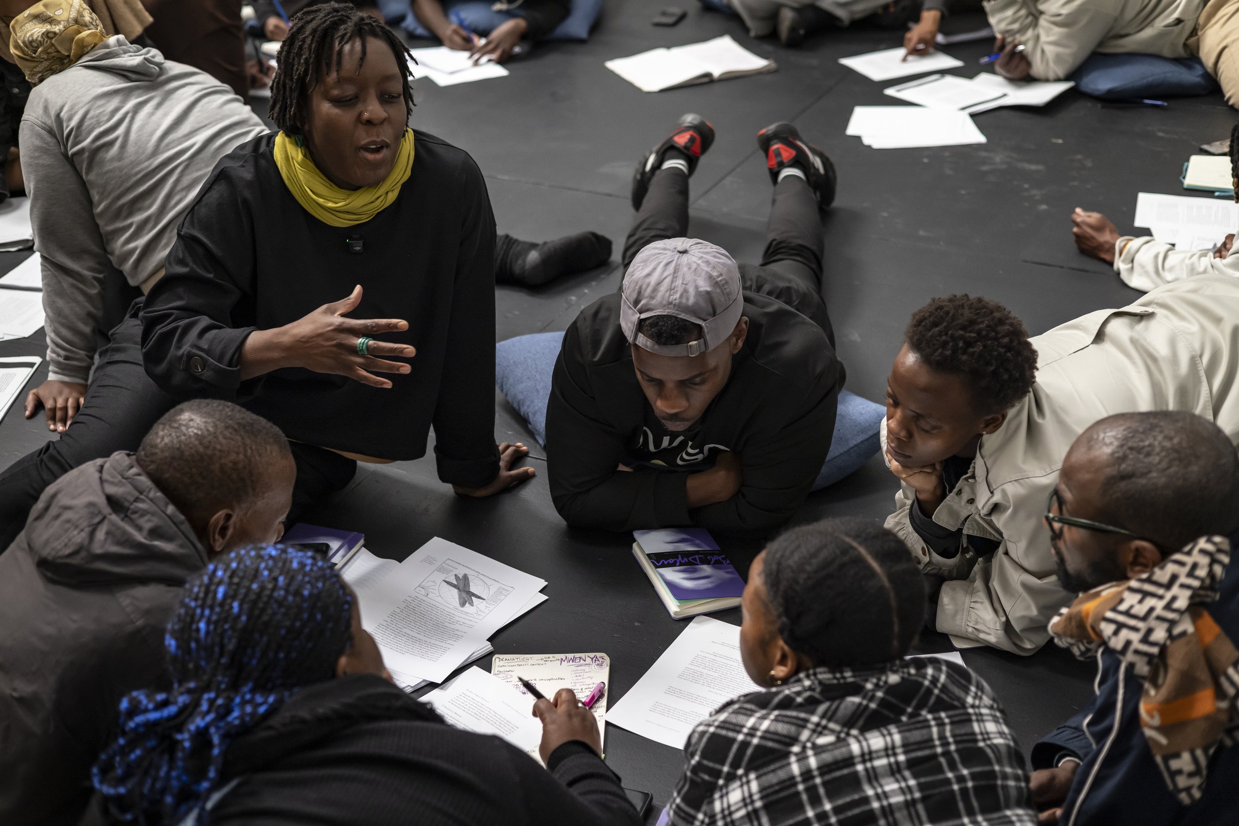 But it is the text EF's Visit to a Small Planet: Some Questions to Ask a Play by Elinor Fuchs, that informs all of these questions and exercises. “Take the play, and in your imagination, scrunch it up, put it in your palm, hold it out and imagine it as if it is a world,” says Kabwe. She goes on to explain that the exercise is about being a curious visitor to this world of the play and asking it a series of questions, such as: How does time work in this world? How does space, power, and language work? “What this does is it allows us to not assume that the world of the play operates with the same rules as our world, and it allows us to approach the play with curiosity and a set of guiding questions.”
